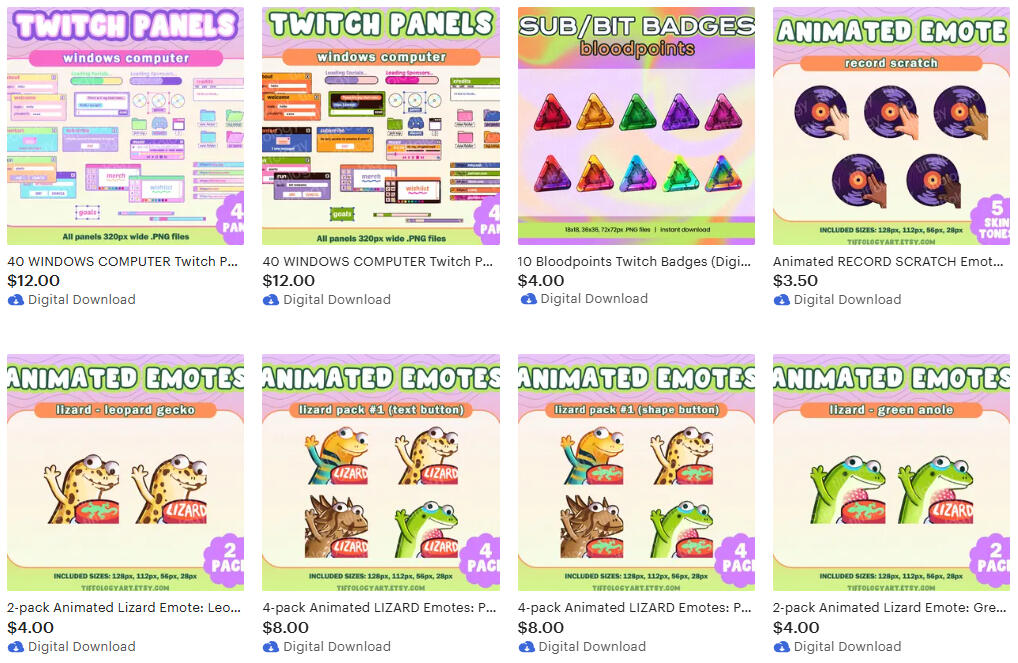 In August 2025, I opened my Etsy digital shop where you'll find premade sub/bit badges, emotes, panels, and more. Click the image below to check it out as I begin to add things slowly.